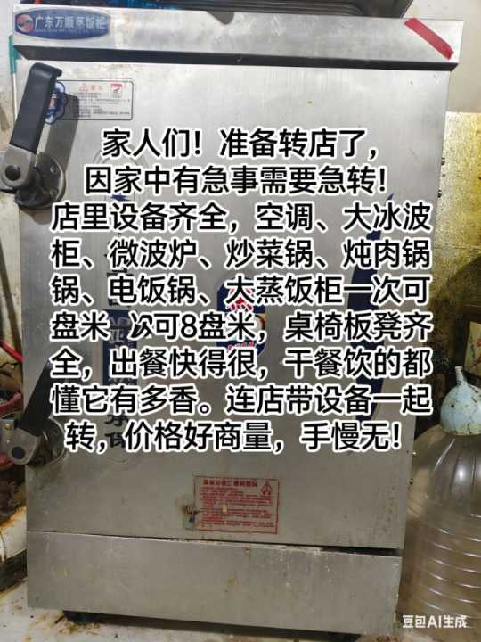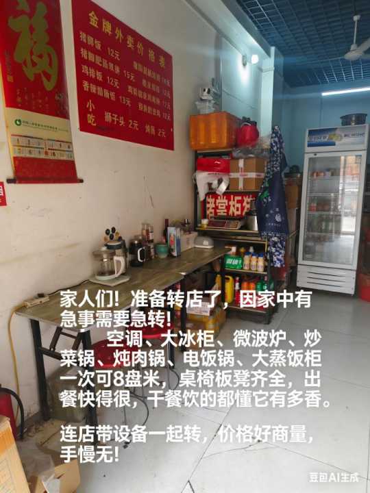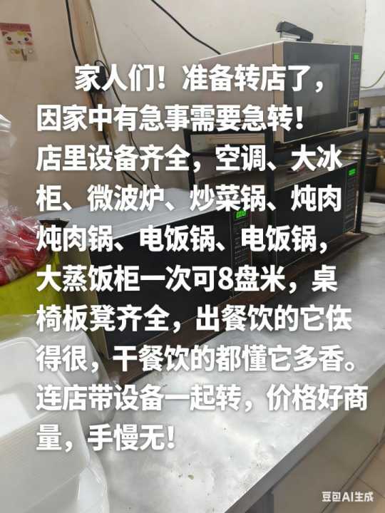 店内设备齐全,也可以传受卤肉配方,因家中急事无法经营需转让,1万元就可接,接手就可以营业,盈利,还有几个月房租不到期,位置好,客源稳定,有意者可联系,可实地考察