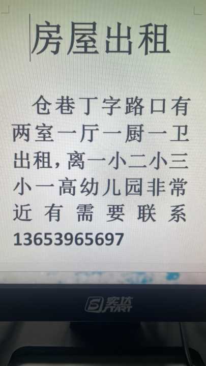 房屋出租仓巷丁字路口有两室一厅一厨一卫出租,离一小二小三小一高幼儿园非...