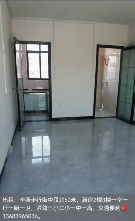 出租:李斯步行街中段北50米,新房2楼3楼一室一厅一厨一卫,紧邻三小二小一...