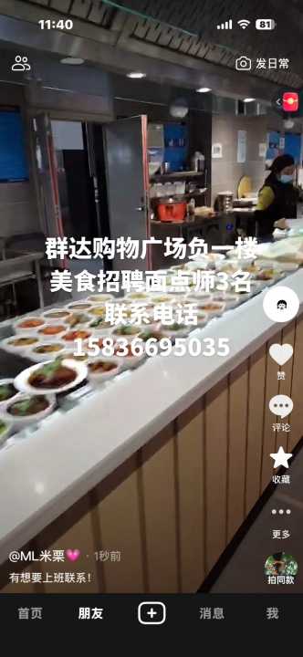 群达购物广场负一楼美食招聘面点师3名,有面点经验会包包子,蒸饺。不用刷...